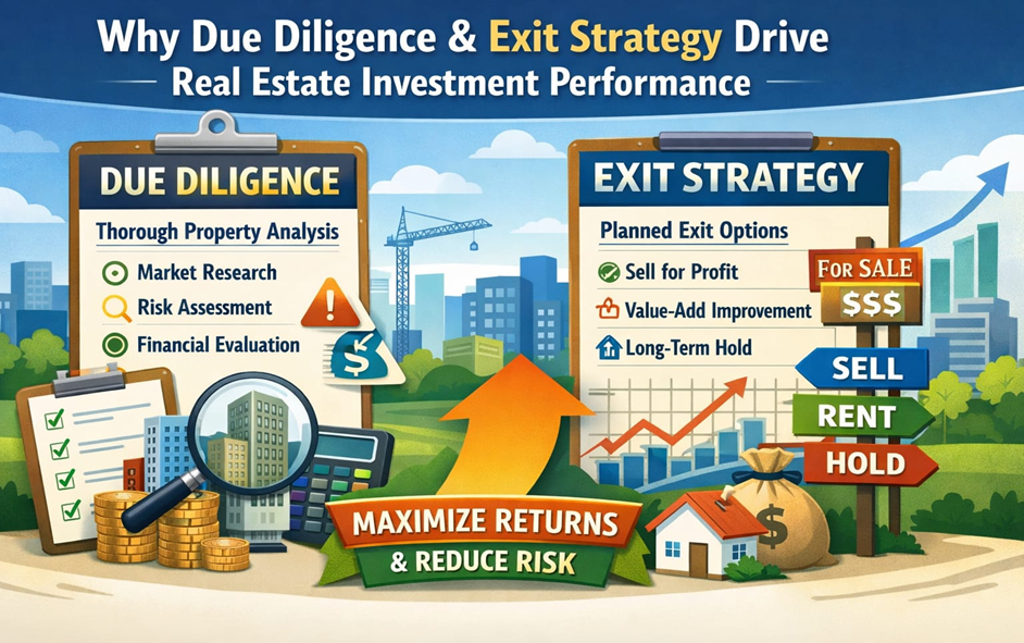 Real estate investment performance is not defined by luck or intuition—it is shaped by preparation and planning. Due diligence ensures that investors understand what they are buying, while a clear exit strategy defines how value will ultimately be realized.